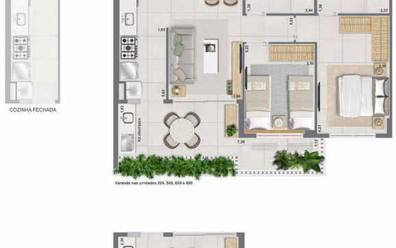 Aptos 2 Quartos Tipo (96 unidades – 64 a 71 m²)